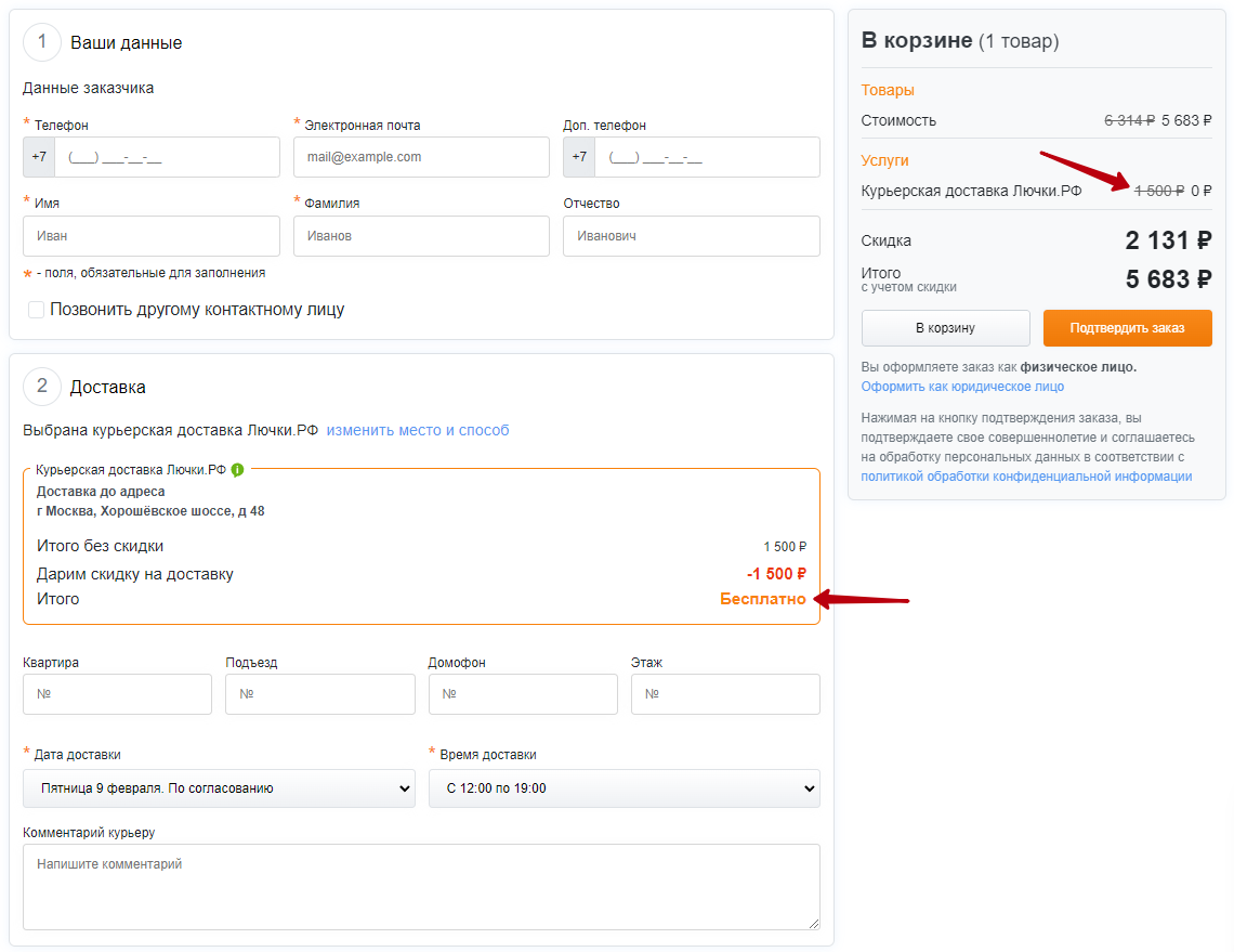 При заказе товара на сайте