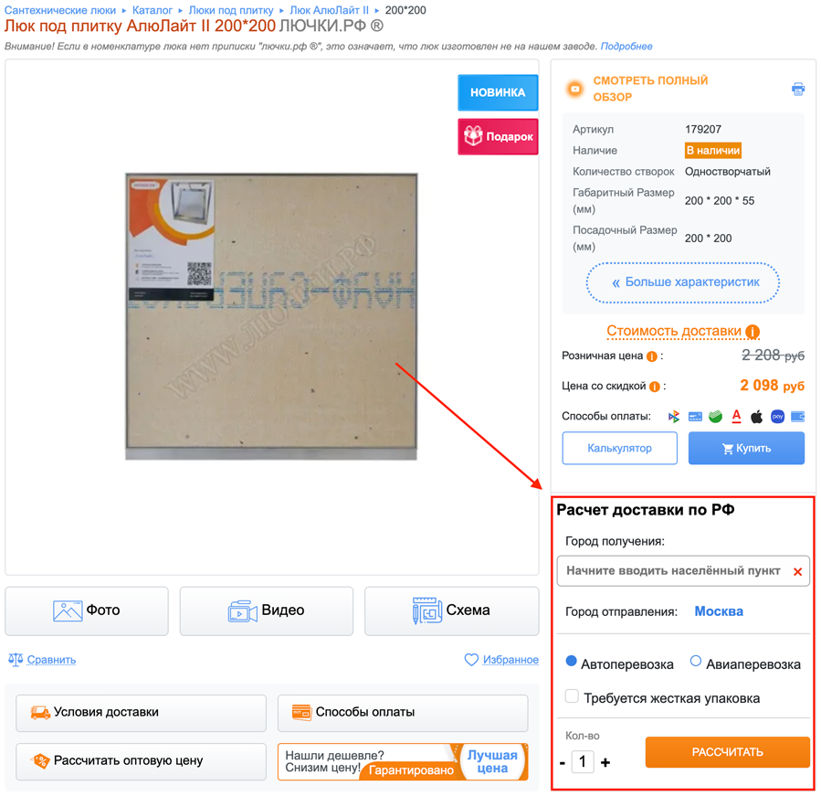 калькулятором доставки